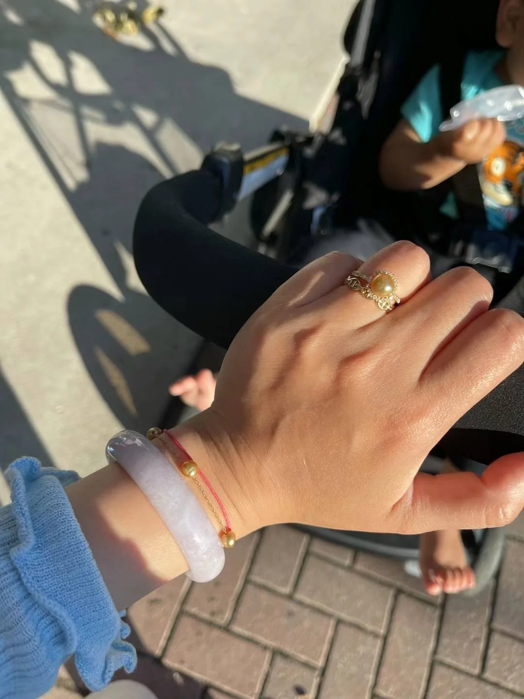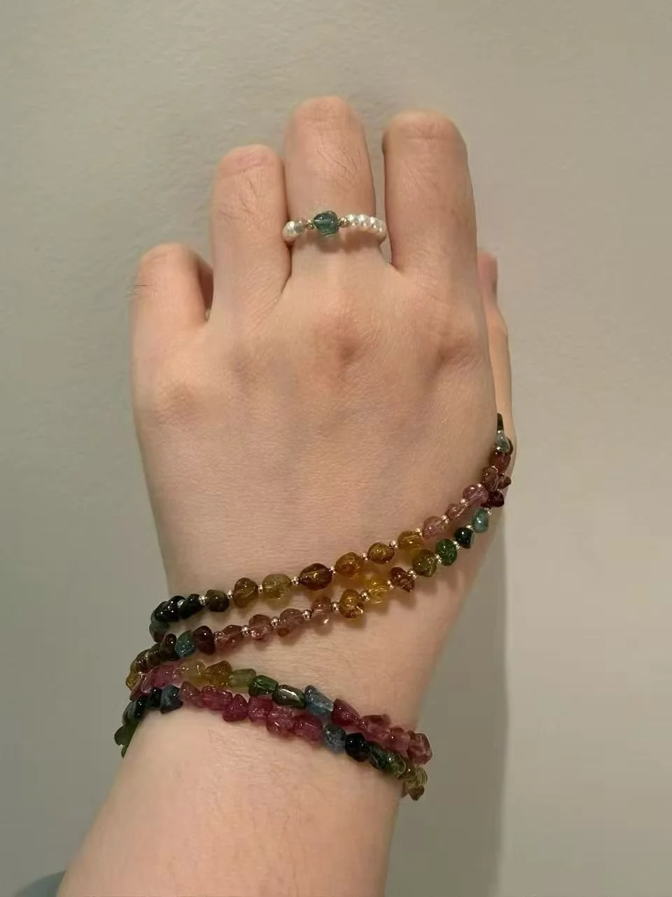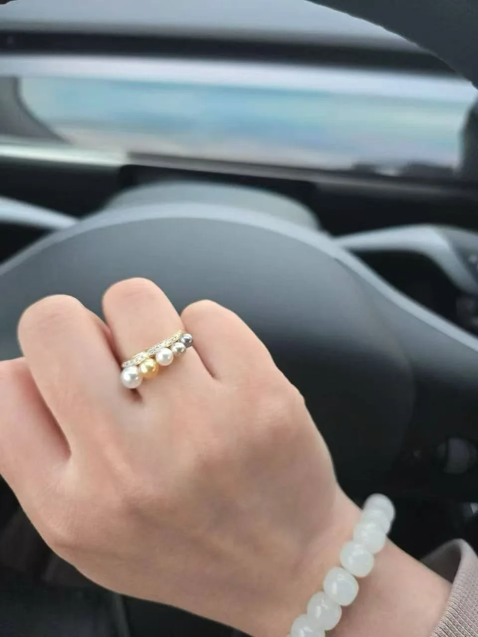 The red makes my hands look white and the pearls look very bright