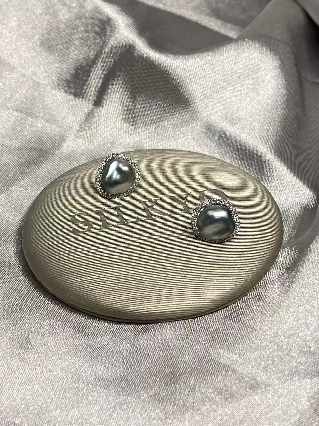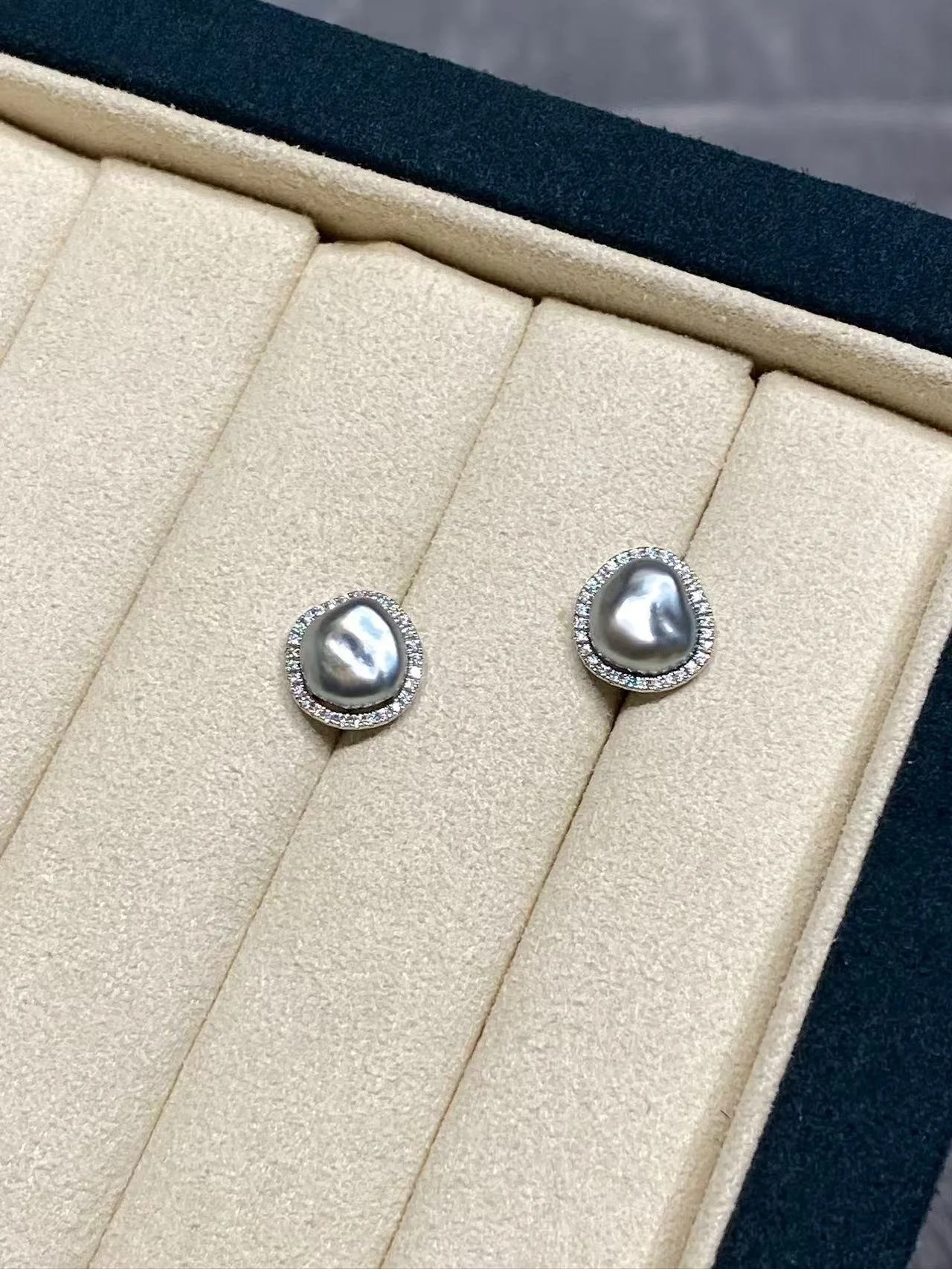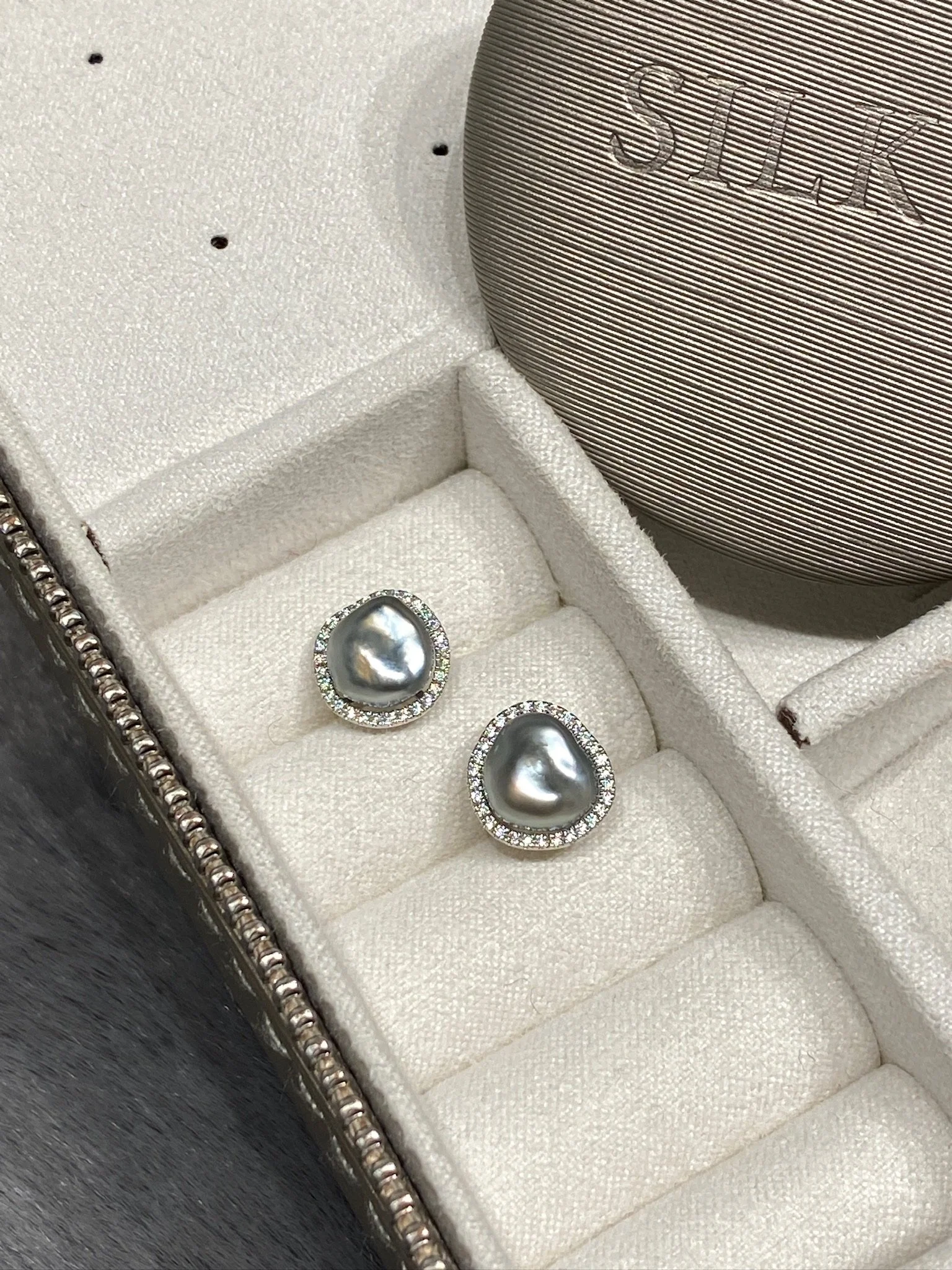 18K White Gold&Lab-Grown Diamond South Sea White Keshi Cultured Pearl Earrings