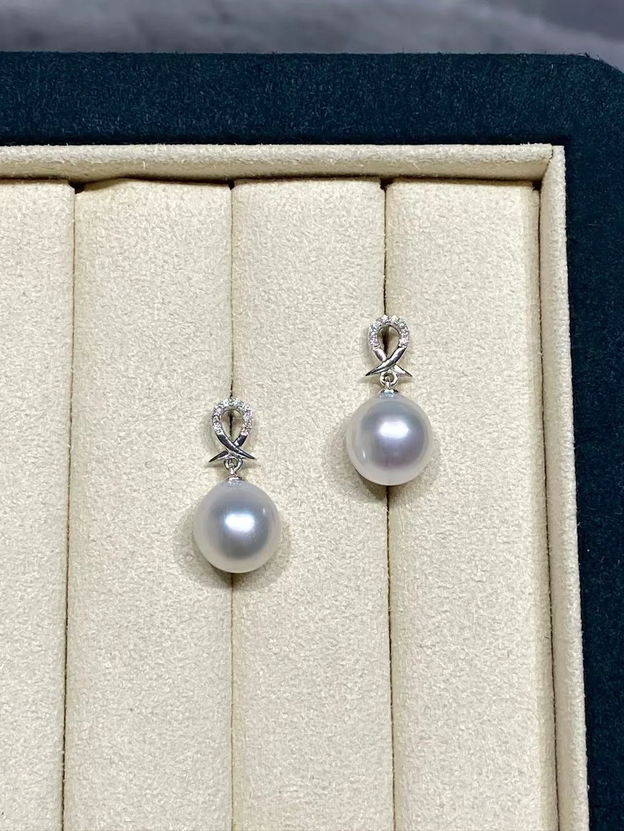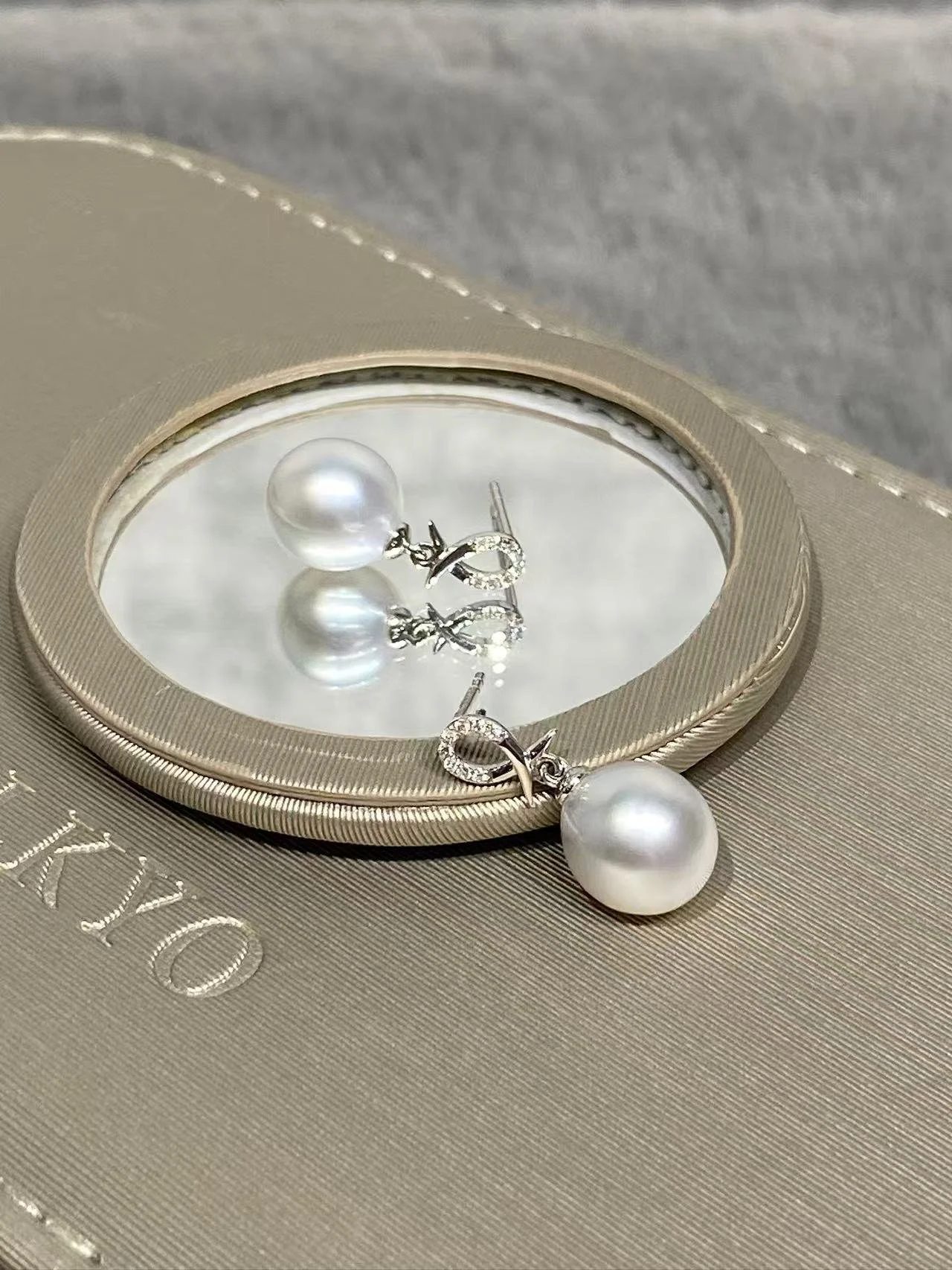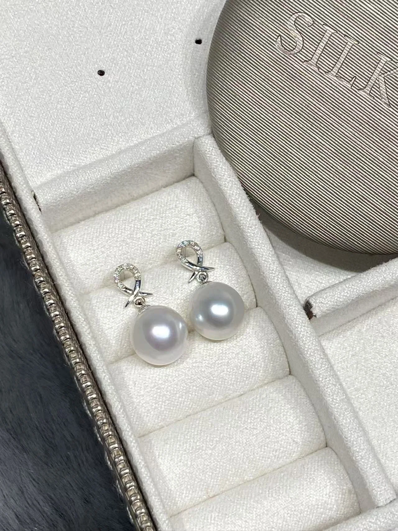 18K White Gold&Diamond South Sea White Cultured Pearl Earrings