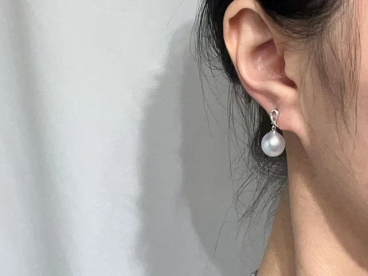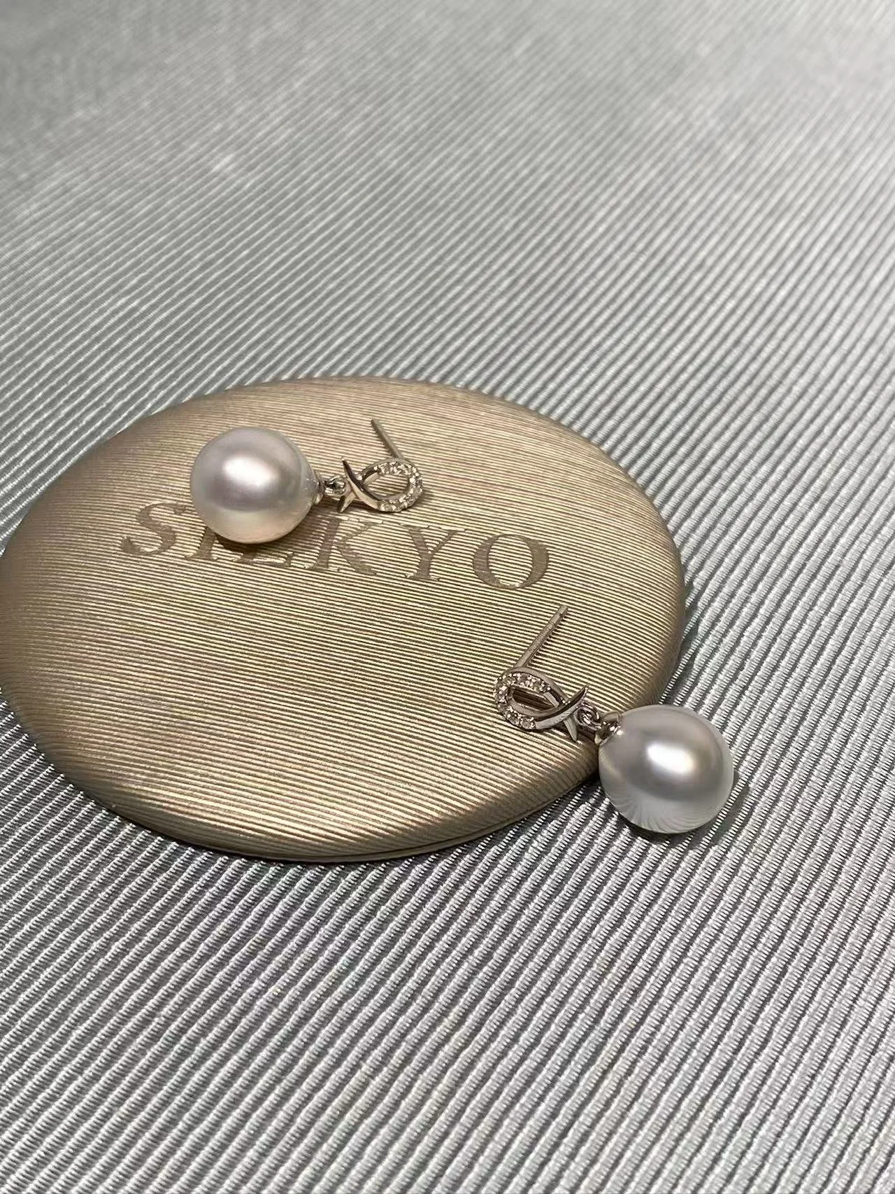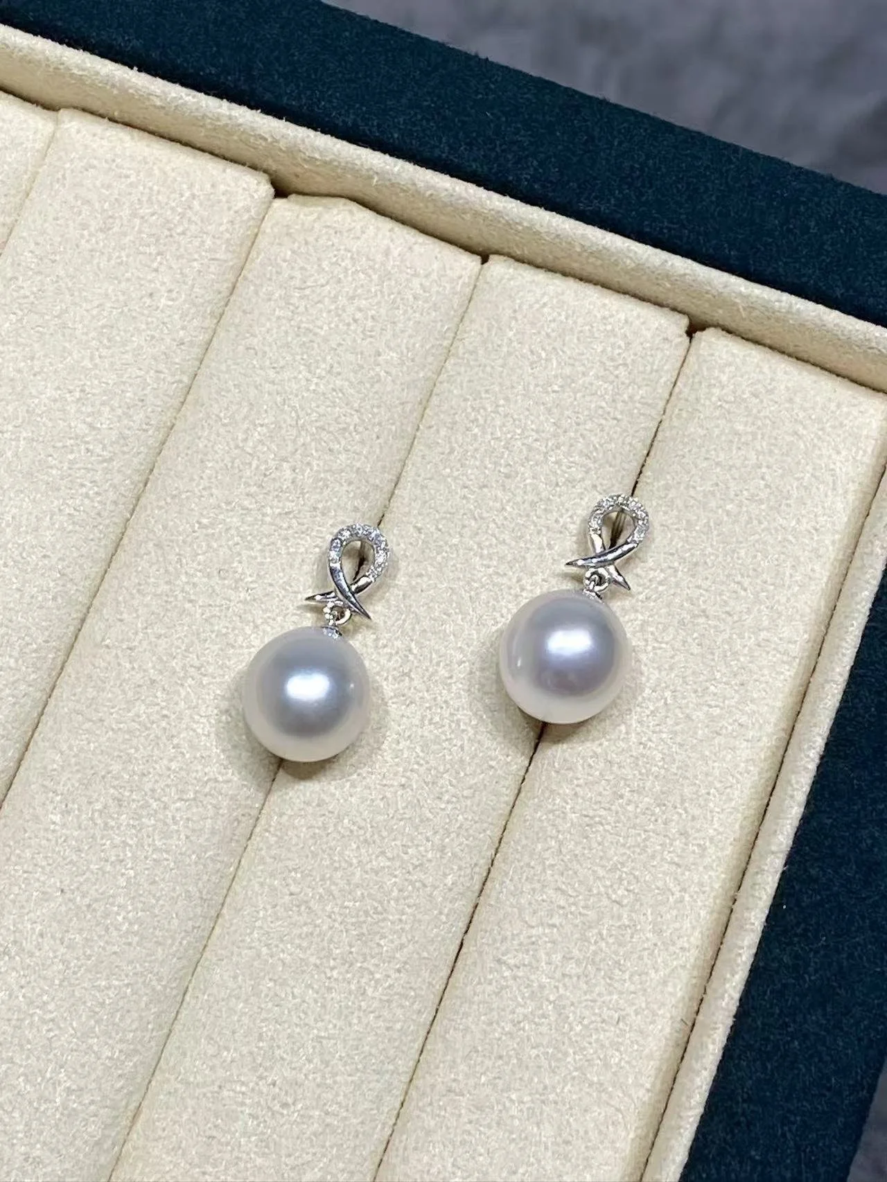 18K White Gold&Diamond South Sea White Cultured Pearl Earrings