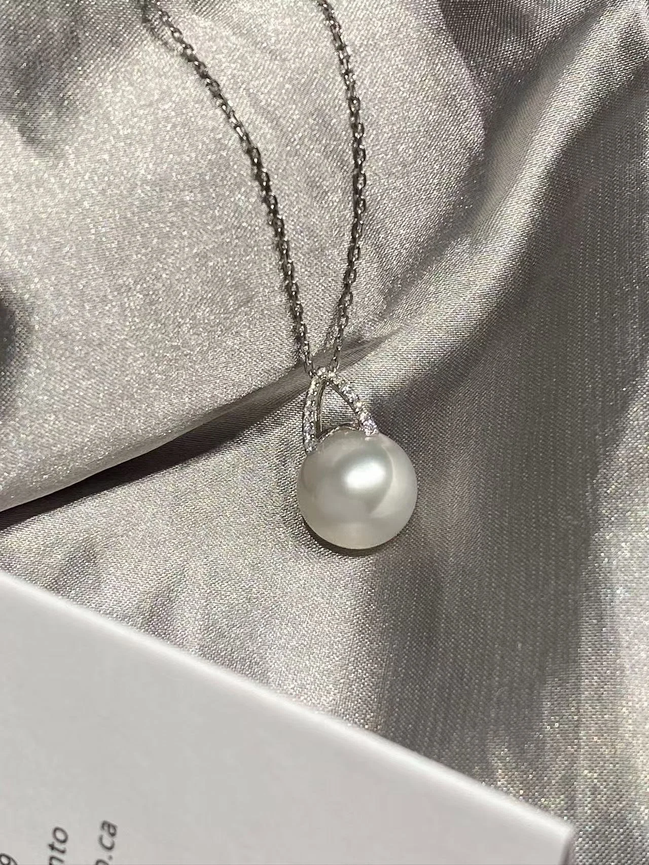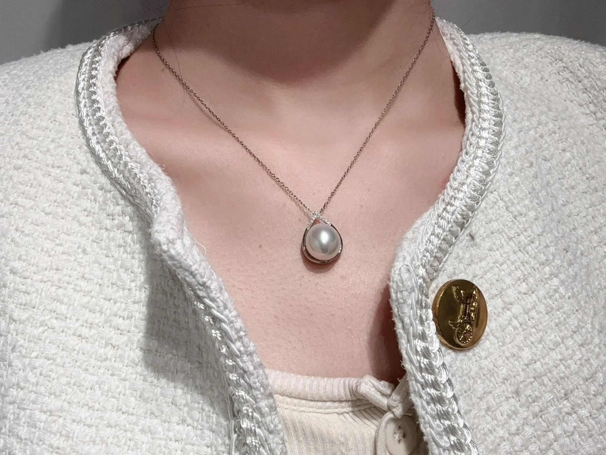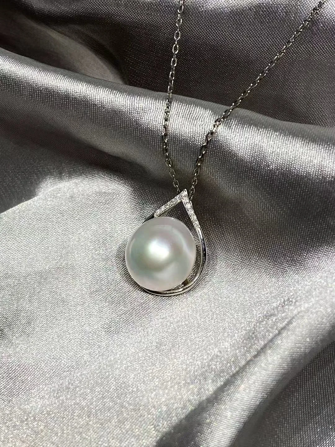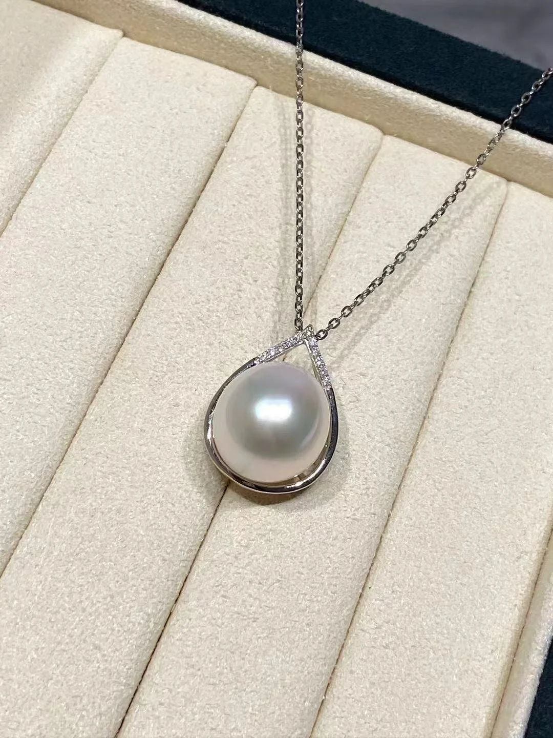 18K White Gold&Diamond Tahiti Cultured Pearl Pendant