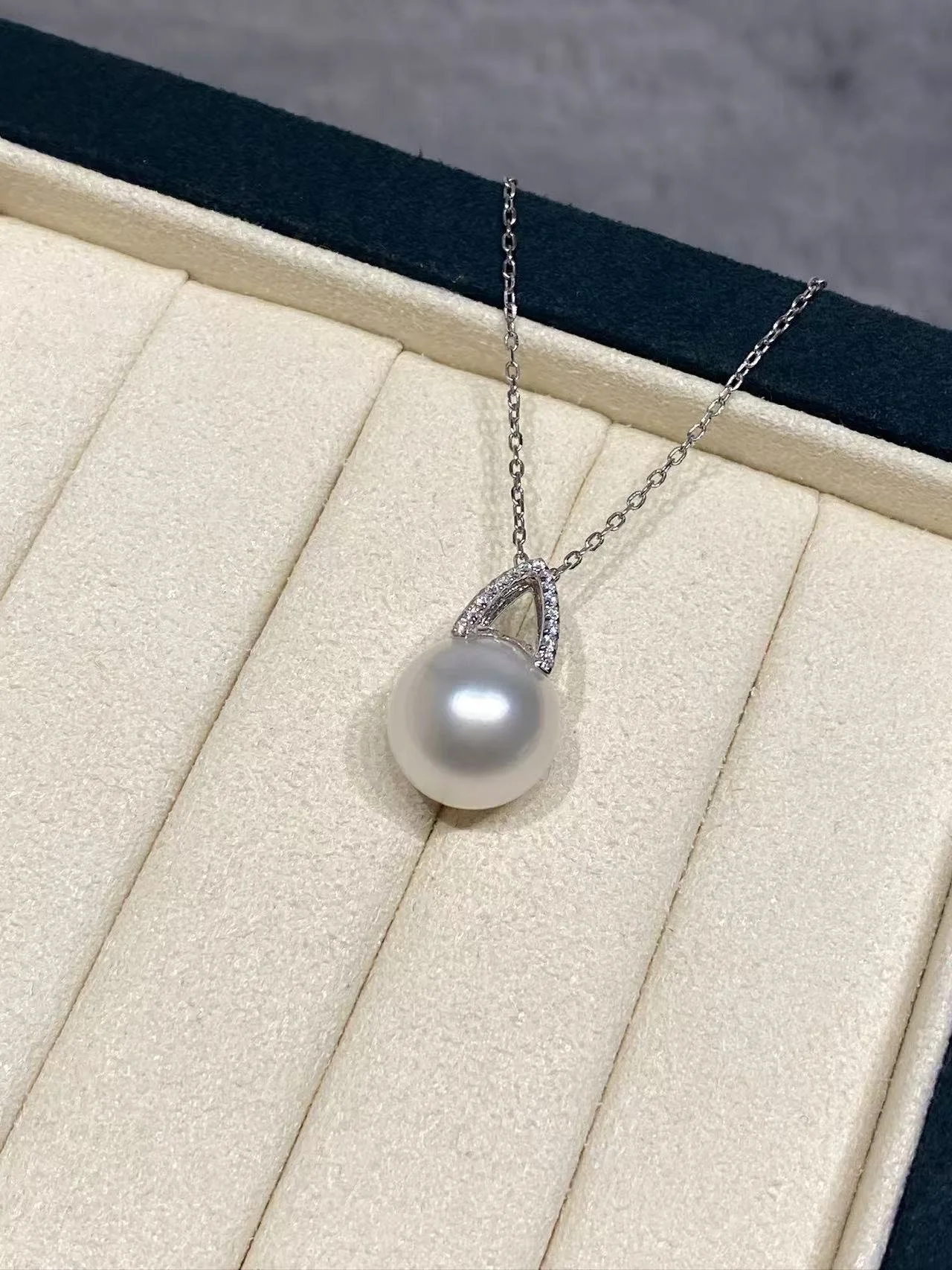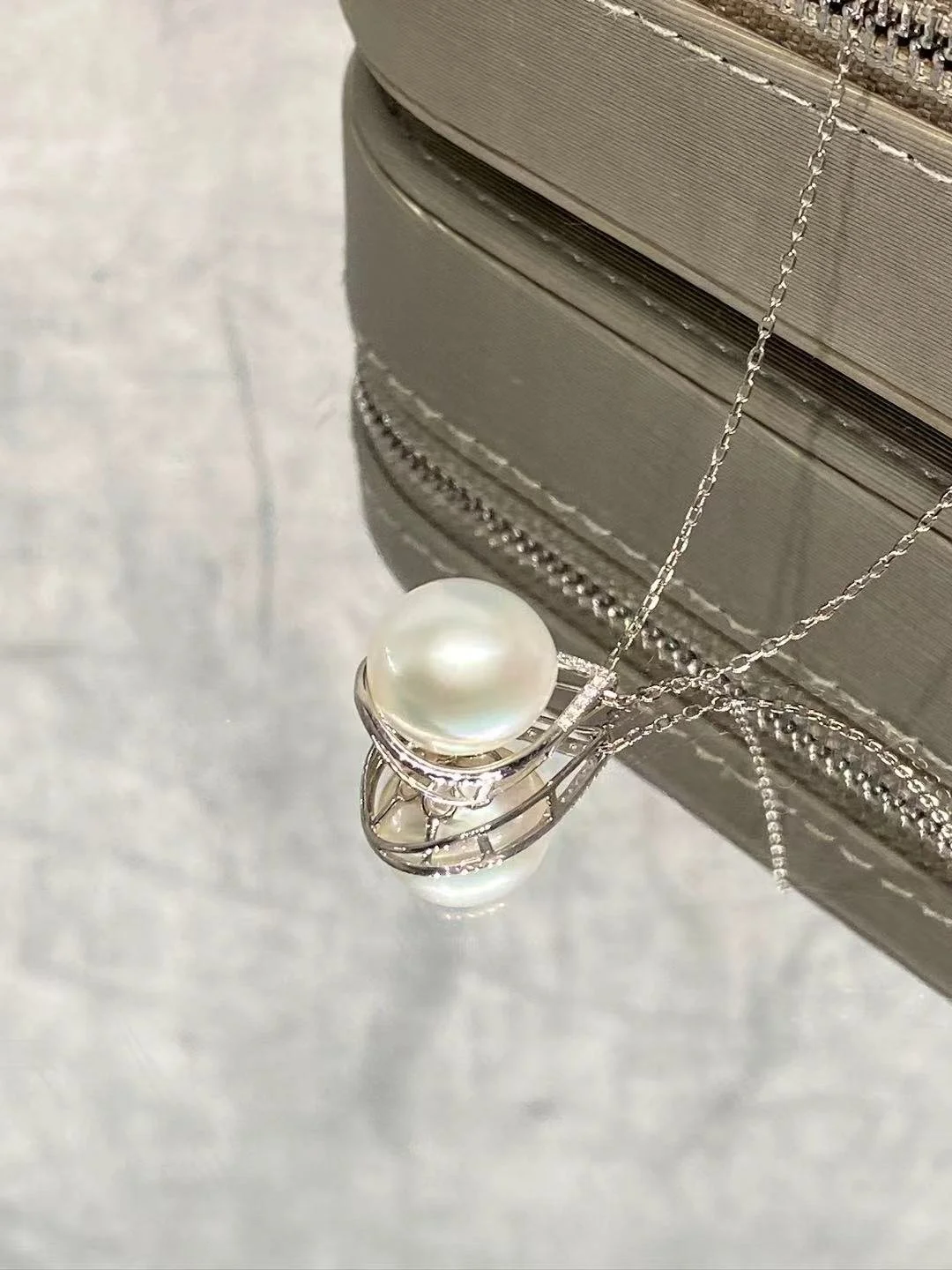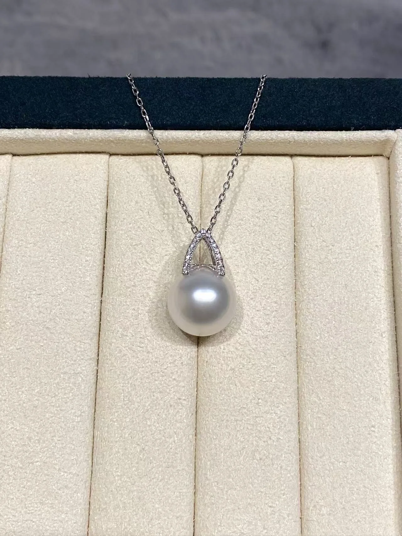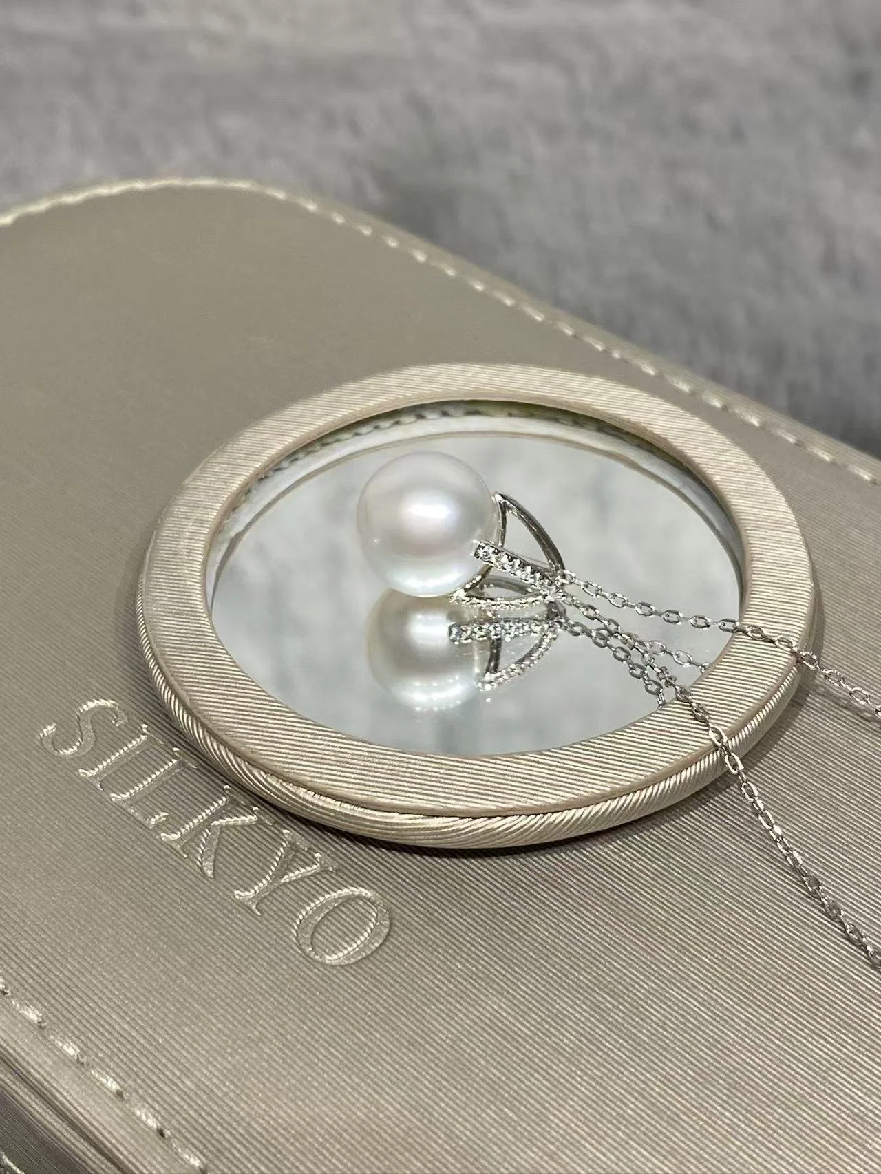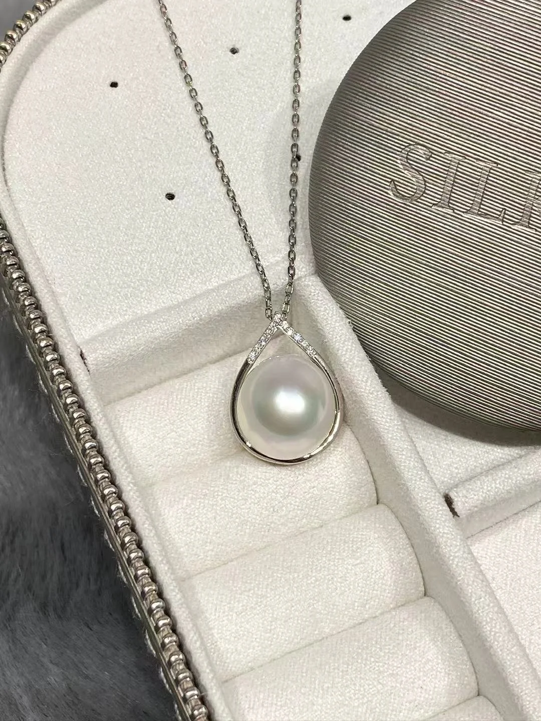18K White Gold&Diamond Tahiti Cultured Pearl Pendant