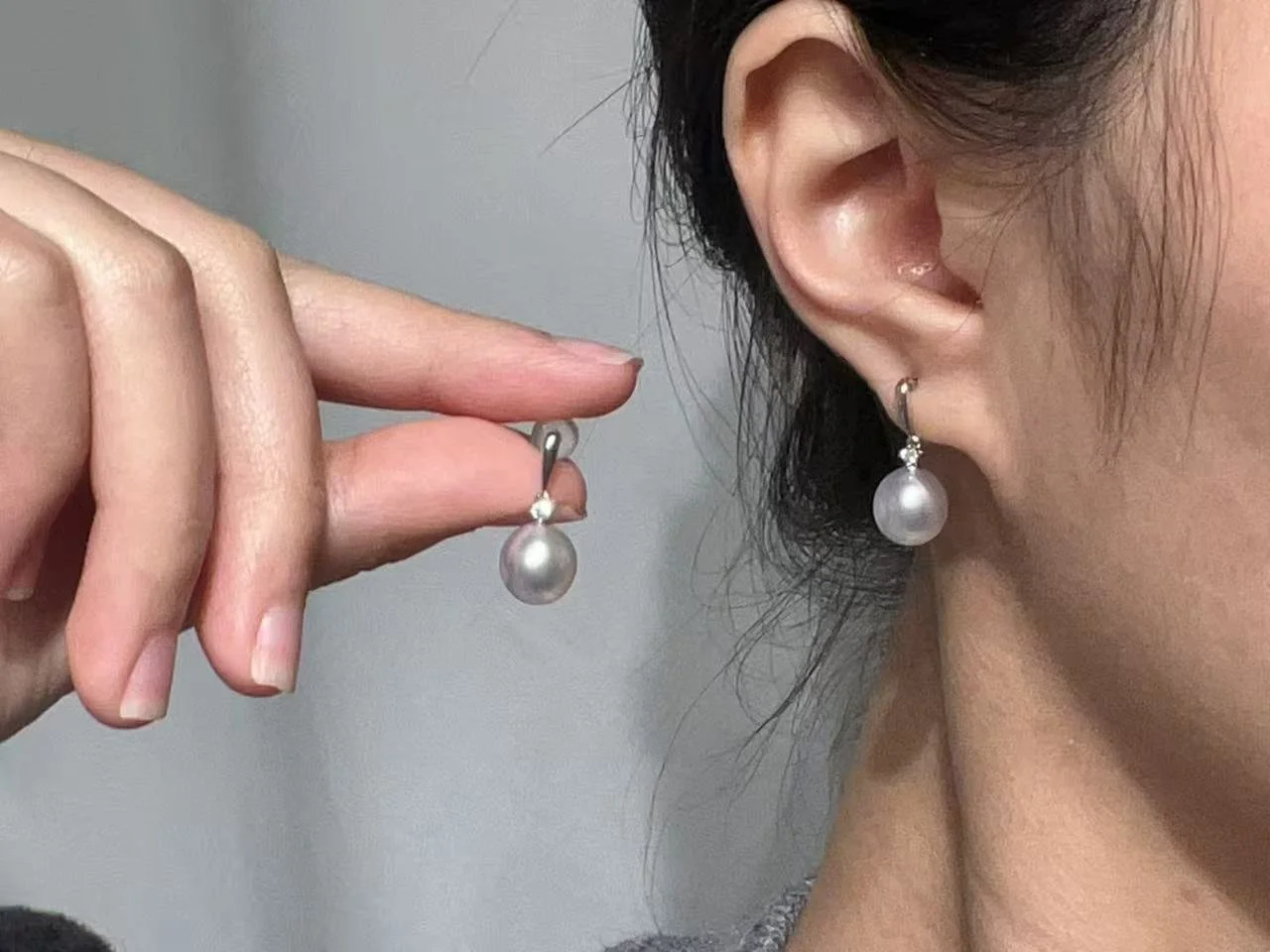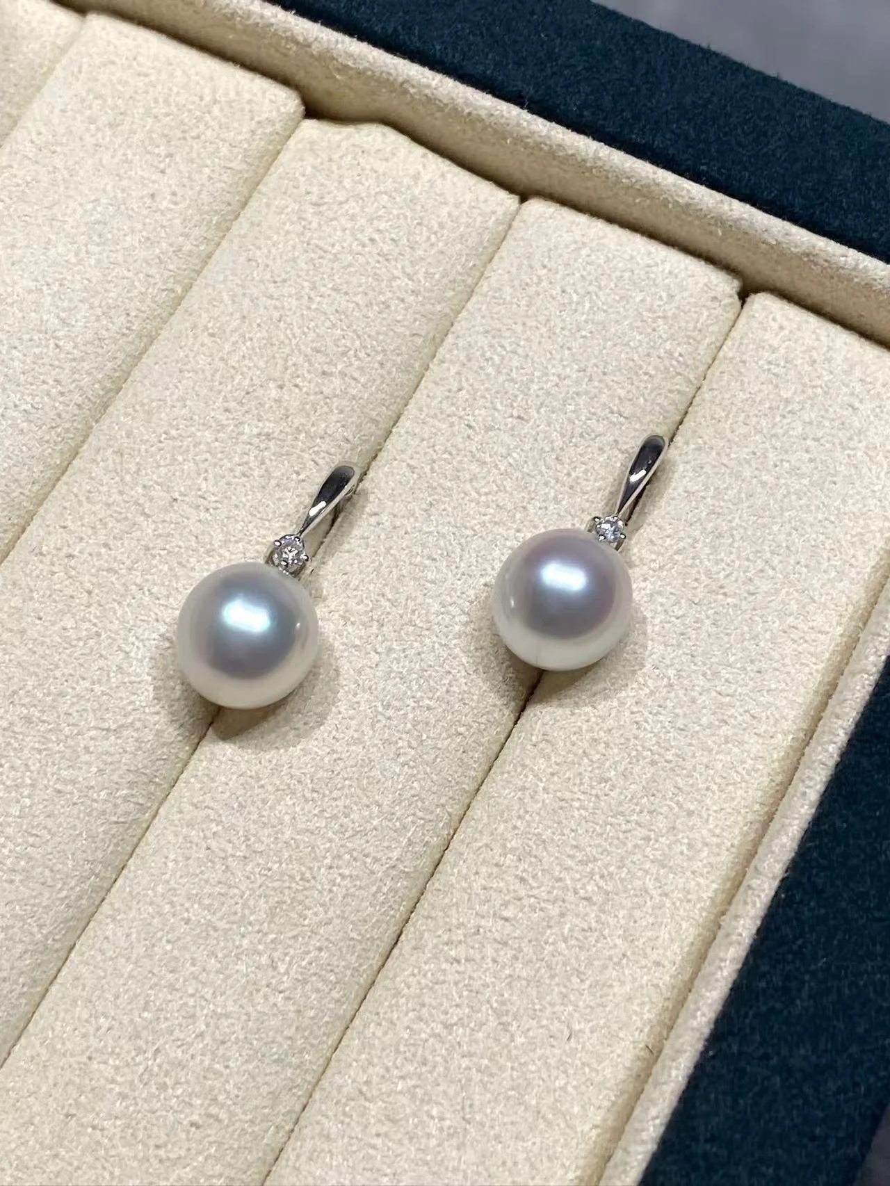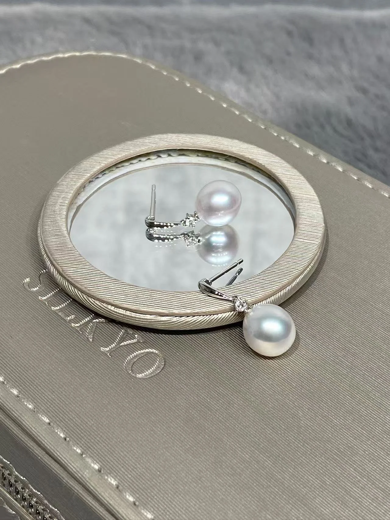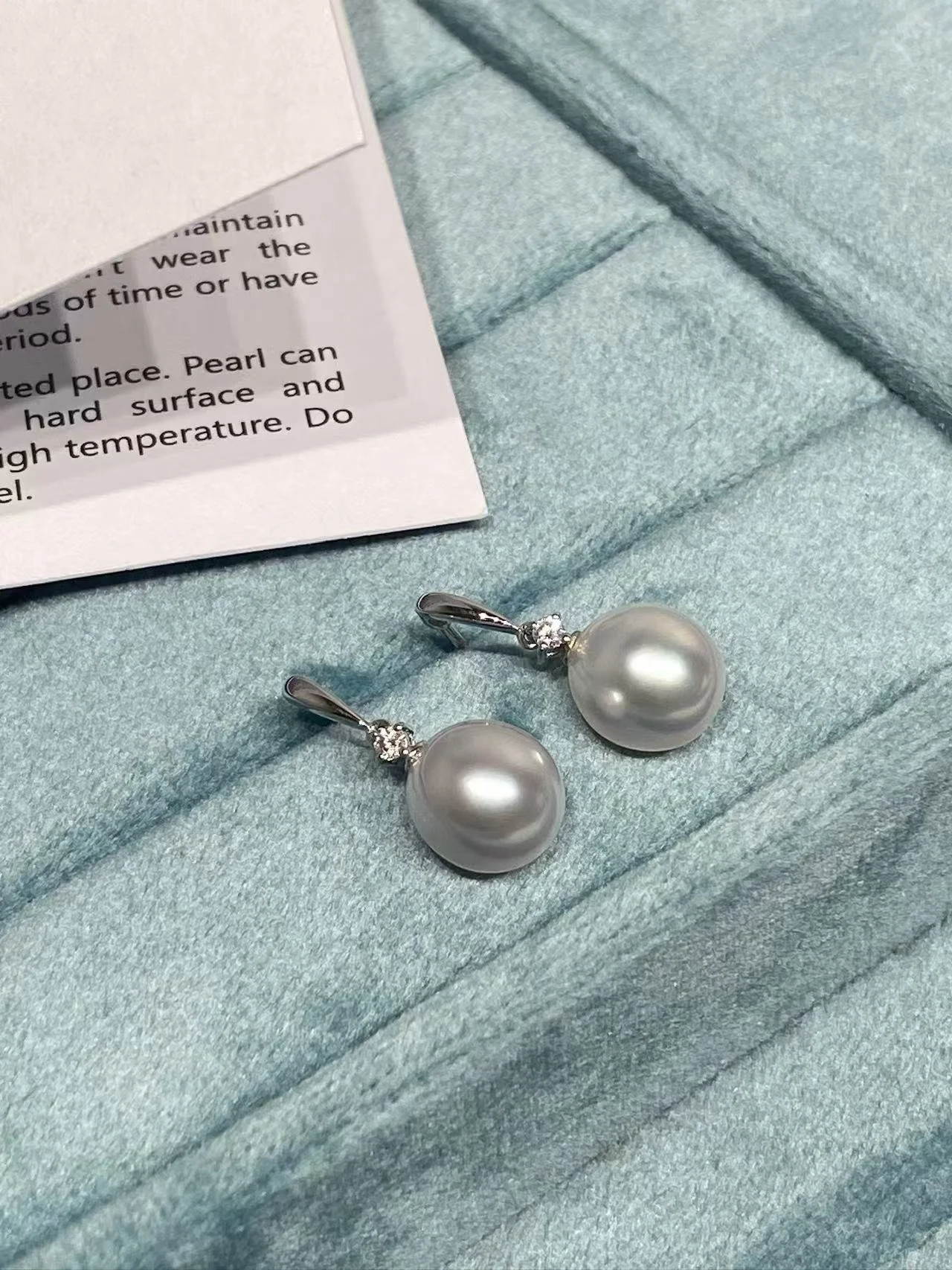 18K White Gold&Diamond Tahiti Cultured Pearl Earrings