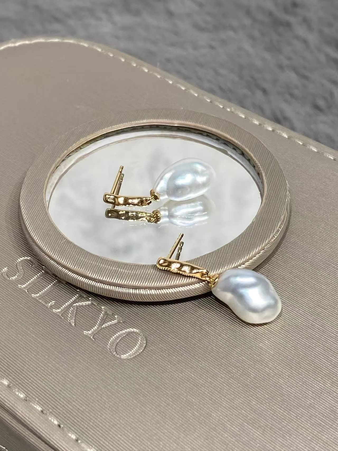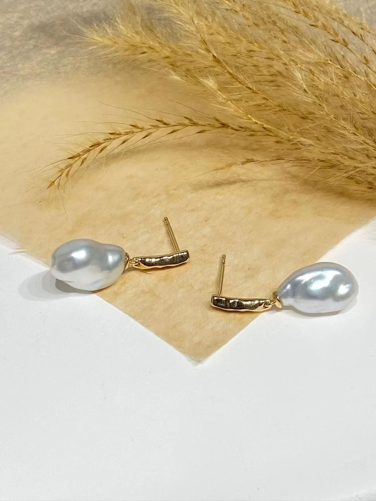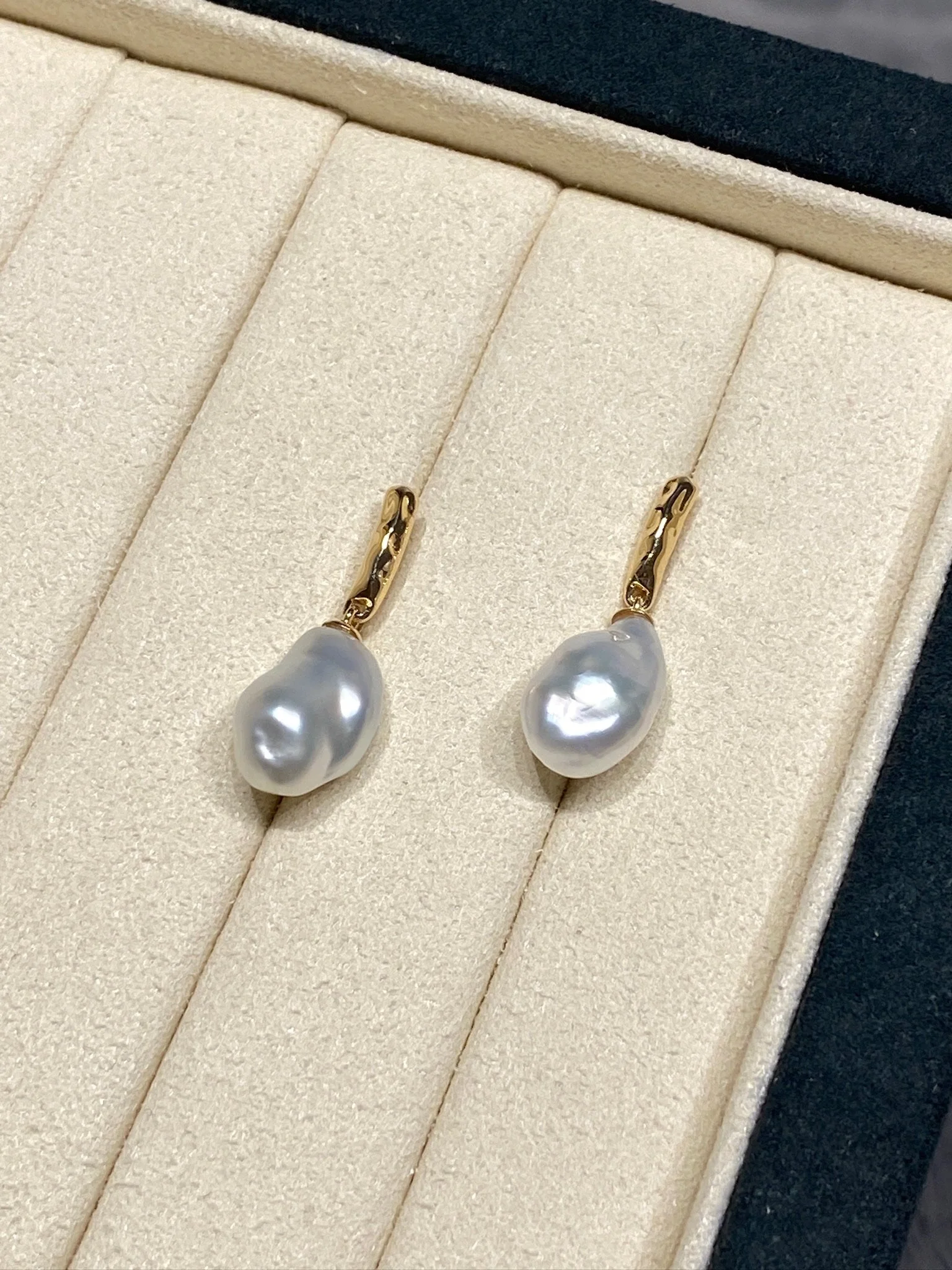 18K White Gold&Diamond South Sea White Cultured Pearl Earrings